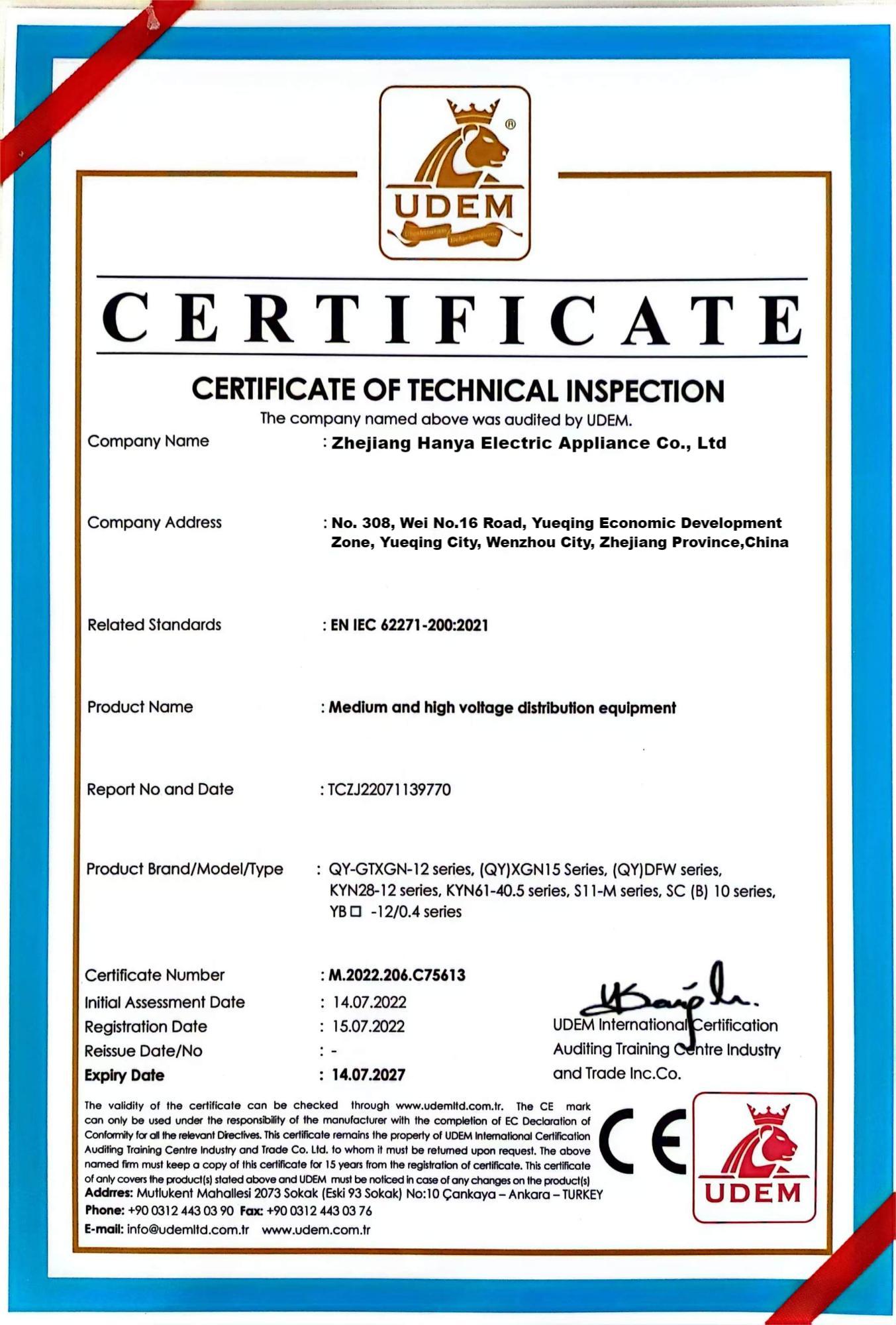 สวิตช์เกียร์เติมแก๊ส 12KV สำหรับโครงการTÜRKIYE